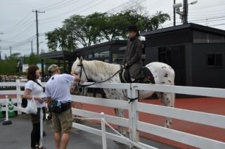 シュエット・ジュマン・フェスティバル初日の門別競馬場は、ブリーダーズゴールドカップ競走のシンボルフラワーである「ダリア」で装飾され、時より雨が降る天気となりましたが、ウニモグ体験乗車(馬場整備車両)、スターター体験(発走模擬体験)、木工体験教室などのイベントが行われました。