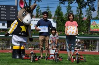 本日は、コンサドーレ札幌DAYとして、AIR-G’高山秀毅氏と野々村芳和氏の競馬&サッカートーク、ドーレくんとじゃんけん&PK対決!などのコラボイベントや、各種体験型・お子様向けイベントなど実施いたしました。高山秀毅氏と野々村芳和氏のトークショーでは、競馬予想や小野伸二選手や元コンサドーレで日本代表の今野泰幸選手について話をしていただき、また、第10競走「コンサドーレ札幌特別」のパドックゲストにご出演いただきました。また、イベント初登場となった三輪車レースでは、お子様から大人の方まで普段では入ることのできないパドックでの特設コースで、白熱したレースが行われ、皆様楽しんでおられました。
