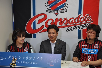 写真中:AIR-G’高山秀毅氏と野々村芳和氏のトークショー