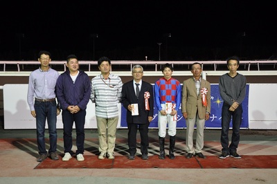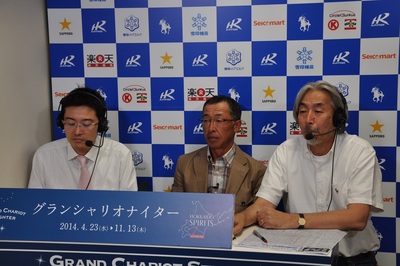 本日のグランシャリオスタジオ 2014.09.11 9月11日(木)、新冠町軽種馬生産振興会特別Ⅱ競走のパドック解説ゲストに新冠町軽種馬生産振興会の中本 隆志会長にご出演いただき、組織の取り組みや軽種馬の流通促進について話していただきました。 また、新冠町軽種馬生産振興会特別Ⅱ競走の表彰式では、プレゼンターも務めていただきました。 写真上:中本 隆志会長 写真下:表彰式
