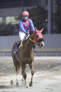「楢崎騎手には積極的に前を追い掛けてほしいと伝えていました。その通り、いい形で追走してくれたんですが、逃げた御神本君のペースがちょっと速かったんでね・・。ただ4コーナーまで見せ場は作れましたし、前走より距離が延びて、相手も強くなっての競馬でしたからね。最後もそんなに大きくは下がってないし、頑張ってくれたと思います。次は水沢のプリンセスカップ(12月1日、1400m)の予定ですが、今回厳しい競馬を経験したのが必ずプラスになると思うんですよ。次走が楽しみです。また、応援してください!」