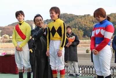 先生から逃げ馬をマークして2番手の外で、と指示されていたんですが、その通りの競馬ができて何とか2着に踏ん張ることができました。ただ、(第1戦で先着=優勝=を許して)トップを争っていた笹川騎手のより前に出てしまいという気持ちでちょっと焦ってしまって、追い出しが我慢できなかった分、最後、木之前騎手に差されてしまい、悔しかったです。競馬は「勝つことが仕事」ですので、1着を取りたかったんですけど、総合優勝できたということなので、その点は素直にうれしいですね。明日には北海道に帰って厩舎の仕事に戻りますが、2歳馬の調教もしっかりこなして、新たなシーズンも「新人王」の名に恥じないよう、頑張って良い競馬をしていきたいと思っています。引き続き、応援よろしくお願いします!