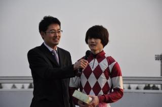 「強い勝ち方をしてくれましたし、自分自身は期間限定騎乗(名古屋競馬)で乗っていたので、ブランクなくレースに臨めました。馬は初コースでしたので、戸惑っていましたが今後は慣れてくれると思います。ホッカイドウ競馬も今日から開幕しましたので、一年間応援よろしくお願いします。」