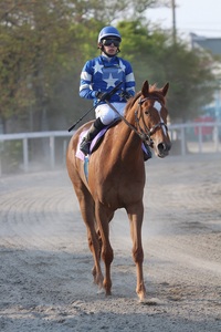 「馬体重の−6キロはまったく想定の範囲内で、加藤(暁海)厩務員がよく頑張ってくれました。仕上がりは良かったですし、攻め馬もできていて久々を感じさせない状態で臨めたのですが、とにかく1600mという「距離」ですね・・。敗因はそこに尽きると思います。昨年暮れの大井(東京2歳優駿牝馬SⅠ)と全く同じで、ラストは馬が苦しがってしまって手前も替えないまま走ってましたから。コーナーを4回まわるようなコースじゃなく、門別1200mみたくワンターン(3,4コーナーのみ)で走る距離で走らせてあげれば全然違った走りを見せてくれるでしょう。今回は残念でしたが、今日勝てなかったことによってJRAの特指では500万下を使えるので、この後はJRA函館競馬・開幕週の芝1200mに挑戦してみようと思っています。今日は応援いただき、ありがとうございました。」