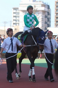 「とにかく全く掛かるとこがない馬なので、なんとか真ん中より前の4,5番手くらいは獲りたいと思って臨んだのですが、スタートも決まって狙っていたポジションを獲ることができました。ただ道中は本当に手応えを感じない馬なので、道中で位置を下げてしまわないように終始、馬を促しながら行きました。門別と違って小回りだし直線も短いので、南関東のコースでは道中で気を抜かせられないんですよね。勝負処でも「とにかく強気に」と思い、4コーナーで早めに前を捕まえに行って直線では先頭に出たんですが、ちょっと手綱の持ち替えをしくじってしまって・・。あそこは完全に乗り役のミスです。それでも馬が頑張ってくれて、ゴール前まで先頭争いできたんですが、そこからもうひと伸び、っていう部分の成長がね。実は2歳時からほぼ完成されていた早熟な馬で、(大井コースで)一週前追い切りに乗らせてもらった時も、今回も「2歳の時からの成長」っていうのがあまり感じられなかったんですよね。この馬、北海道では坂路を有効に使って鍛えていた馬なので、こちらにも坂路があればまた違うかもしれませんけどね。それでも、マイルの距離でこれだけの競馬ができたのは自信になりますし、2000mに延びる帝王賞でも上位争いできるよう頑張りたいですね。」