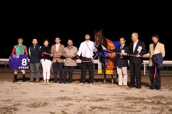 本日のメイン競走、日刊スポーツ賞 第19回 北海道スプリントカップ【JpnⅢ】[ダート1,200m(外) 晴・良]が行われ、2番人気シゲルカガ号が2着ポアゾンブラック号に3/4馬身差をつけて優勝しました(タイム:1.12.5)。