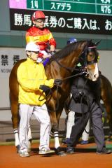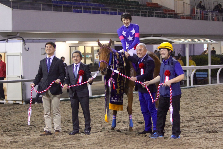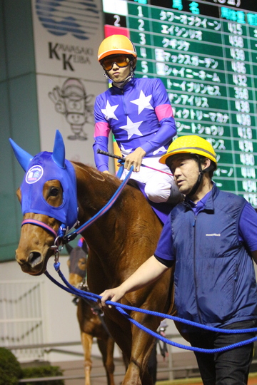 「あれだけスタートも良かったですからねぇ、結果的に前を追いかけて行った方が良かったのかもしれませんね。今回は体も絞れて馬も落ち着いてましたし、出来は非常に良かったと思います。初コースも、ここのキツいコーナーも問題なくクリアはしてくれたんですが、なんせ前にあれだけ離されては、もう馬だって追いかける気にならないですもんね・・。残念ですが仕方ないですね。この後は移籍が決まっていて、明日ここから大井の蛯名厩舎に移動することになっています。新天地でも頑張ってほしいですね。応援いただき、有難うございました。」