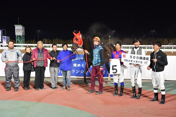 4月27日(水)、門別競馬 第7レースで松井 伸也騎手(齊藤 正弘きゅう舎)がベストスナイパー号に騎乗し、6,705戦目で中央・地方通算500勝を達成しました(ホッカイドウ競馬では現役11人目)。