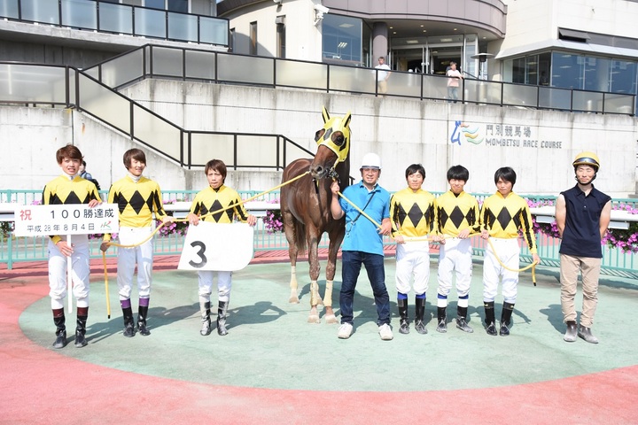 8月4日(木)、門別競馬 第1レースで井上 幹太(いのうえ かんた)騎手(堂山 芳則きゅう舎所属)がヘイジュード号に騎乗し、1,105戦目で地方・中央通算100勝を達成しました(ホッカイドウ競馬では現役22人目)。
