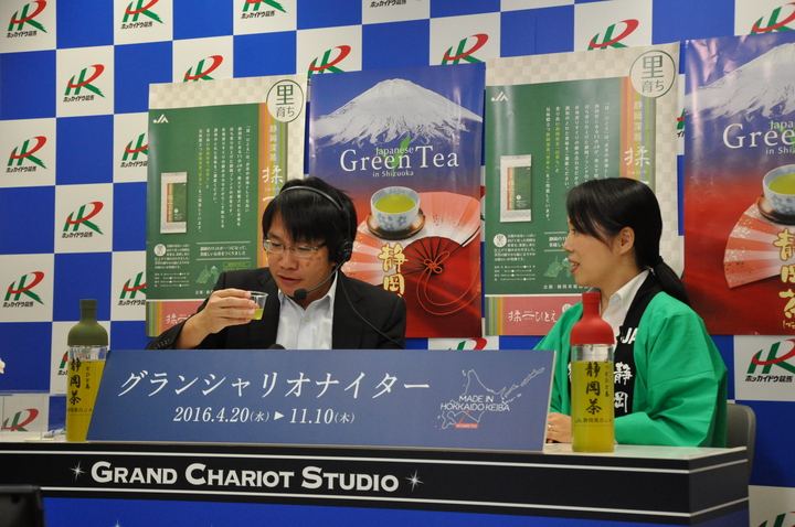 JA静岡茶試飲会の実施について その他 2016.09.21 9月21日(水)、静岡県農業協同組合中央会協賛『ほっとひと息・JA静岡茶特別』を実施しました。 場内では、JA静岡のPRや静岡茶の試飲会を実施したほか、スタジオゲストとして、静岡県農業協同組合中央会 経営指導部 皆倉 純代さんにご出演いただき、静岡茶の生産やお茶の種類について話して頂きました。 試飲会の様子1 試飲会の様子2 ゲスト出演の様子