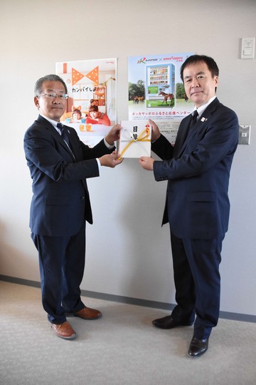 北海道軽種馬振興公社 笠原専務理事(左)、ポッカサッポロ北海道株式会社 取締役 戦略企画部部長 三上様(右)