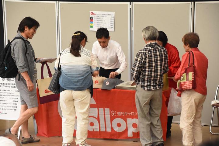 週刊Gallop抽選会が実施されました その他 2017.07.06 本日実施された重賞競走「週刊ギャロップ杯 第14回星雲賞」を記念し、『週刊Gallop抽選会』が門別競馬場で実施されました。(主催:週刊Gallop) 抽選会には多くのファンが参加し、週刊Gallop特製グッズのレース写真パネルをはじめ、キャップやポストカードなどがプレゼントされました。