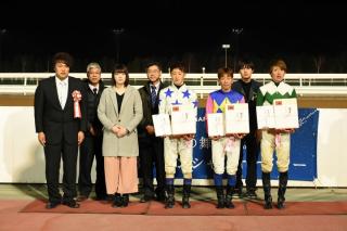 トータル35点を獲得した服部 茂史騎手が見事総合優勝となり、2位は27点を獲得した桑村 真明騎手、3位は21点を獲得した石川 倭騎手でした。3名には、副賞としてみついし和牛の詰め合わせが贈呈されました。