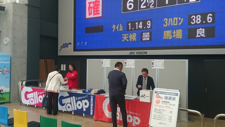 週刊Gallop抽選会を実施! その他 2018.07.19 本日実施された重賞競走「週刊ギャロップ杯 第15回星雲賞」を記念し、『週刊Gallop抽選会』を門別競馬場で実施いたしました。(協賛:週刊Gallop) 開門と同時に開始された抽選会には、多くのファンが参加し、週刊Gallop特製グッズのレース写真パネルをはじめ、キャップや臨時増刊号「ありがとうキタサンブラック」などがプレゼントされました。