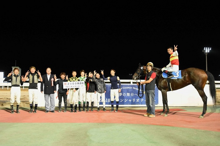 平成30年8月8日(水)、門別競馬 第10競走で永島 太郎(ながしま たろう)騎手(兵庫所属、期間限定騎乗中)がゴッドパイレーツ号に騎乗し、18,127戦目で2,000勝を達成しました。