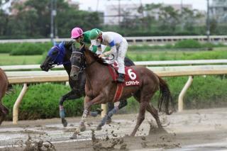 「返し馬のときから、物見が酷かったです。レースでも、スタートして、しばらくは想定の範囲内の感じで行っていたのですが、馬場が悪かったことで、水が浮いてグチャグチャの内側に入ろうとせず、1コーナーのときに、自分からブレーキをかけて、止めてしまいました。これが全てですね。」