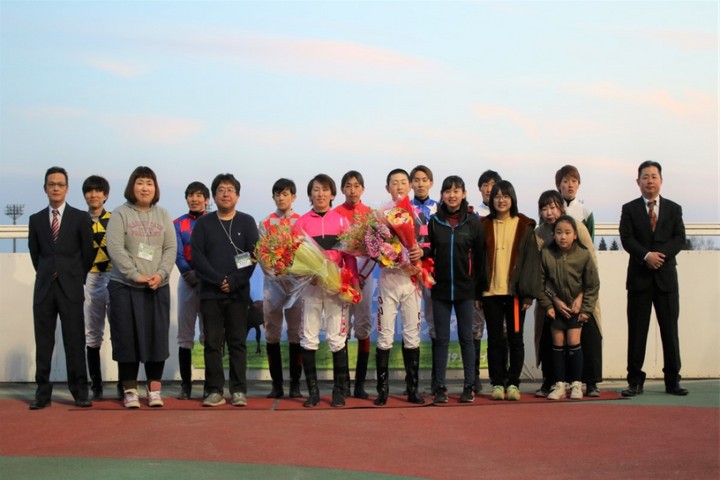 本日(4月17日)の第3競走でデビューを迎えた新人の小野楓馬騎手(小野望きゅう舎所属)、本日から期間限定騎乗を開始した加藤誓二騎手(川島雅人きゅう舎所属)の紹介セレモニーを行いました。小野楓馬騎手、加藤誓二騎手の活躍にご期待いただき、応援よろしくお願いします。