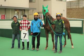 山口竜一調教師100勝達成 その他 2019.04.23 4月23日(火)、門別競馬 第1Rでガッサンノリュウ号が1着となり、管理する山口竜一調教師は通算100勝(875出走)を達成しました。 口取りの様子