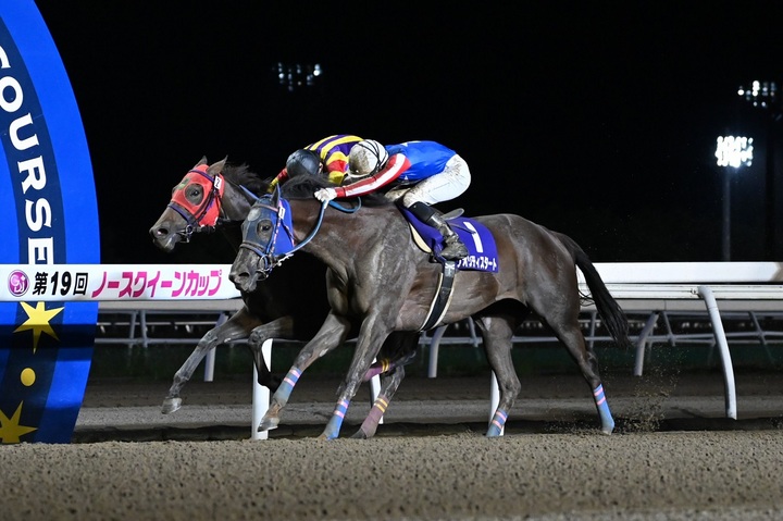 本日のメイン競走、GRANDAME-JAPAN2020 サンケイスポーツ杯 第19回 ノースクイーンカップ〔H2〕(シニスターミニスター賞)[ ダート1,800m(外) 曇・稍重 ]が行われ、2番人気クオリティスタートが2着アンバラージュにハナ差をつけて優勝しました。(タイム:1.57.1)