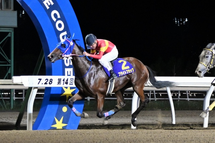 本日のメイン競走、netkeiba.com杯 第14回 ブリーダーズゴールドジュニアカップ〔H1〕(ブラックタイド賞)[ ダート1,700m(外) 晴・良 ]が行われ、1番人気ブライトフラッグが2着ノットリグレットにアタマ差をつけて優勝しました。(タイム:1.51.0)