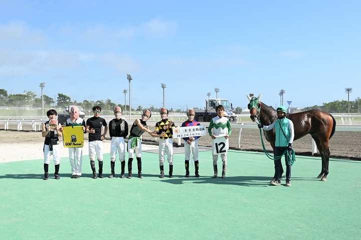 7月7日(木)、門別競馬 第1競走で石川 倭 (いしかわ やまと)騎手(米川 昇きゅう舎所属)がルーンファクターに騎乗し5,554戦目で800勝を達成しました。