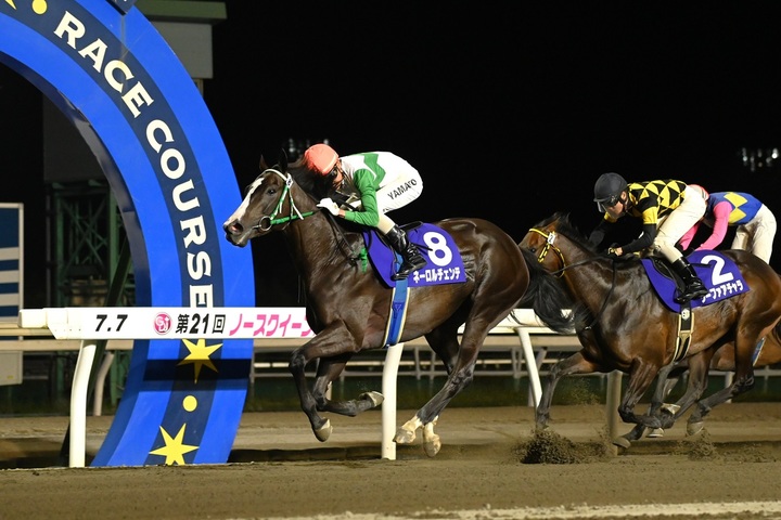 本日のメイン競走、GDJ2022 サンケイスポーツ杯 第21回 ノースクイーンカップ〔H2〕(ダノンスマッシュ賞)[ダート1,800m(外) 曇・良]が行われ、3番人気ネーロルチェンテが2着クーファアチャラに1馬身差をつけて優勝しました(タイム:1.55.9)。