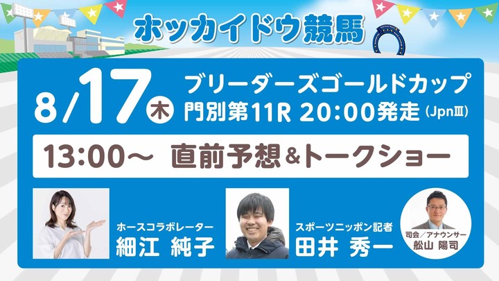 なお、当日のLIVE配信は、【公式】ホッカイドウ競馬LIVE「なまちゃき」をご確認ください。