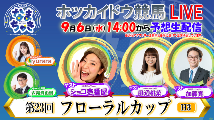 MC:yurara 解説者:大滝貴由樹 ゲスト:ショコ壱番屋さん(競馬YouTuber)、田辺桃菜さん(UHBアナウンサー)、加藤寛さん(UHBアナウンサー)