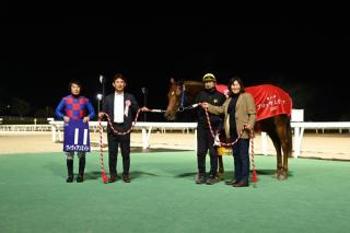 また、同馬を管理する齊藤正弘調教師と騎乗した松井伸也騎手はともにブロッサムカップ初勝利となりました。