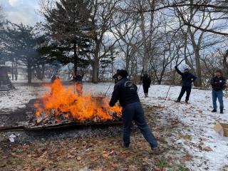 本日、2023年シーズンに門別競馬場 グランシャリオ神社にお客様からお預かりした、はずれ勝馬投票券・おみくじのお焚き上げが地元日高町の富川神社にて行われました。