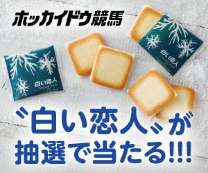 ホッカイドウ競馬LINE公式アカウントでは、期間中に友だち追加をしていただいた方とすでに追加されている方の中から抽選で、合計1,000名様に「白い恋人」をプレゼントいたしますので、ぜひご参加ください。