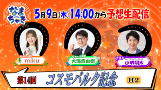 また、今回のなまちゃきは、後半5レースの回収率対決を実施しております。視聴者の皆様には、誰が回収率で一番となるのか予想して頂き、的中者のなかから抽選で5名様に「なまちゃきクオカード」をプレゼントしちゃいます。詳細については、概要欄に応募URLが記載されておりますので、皆様のご投票をお待ちしております。
