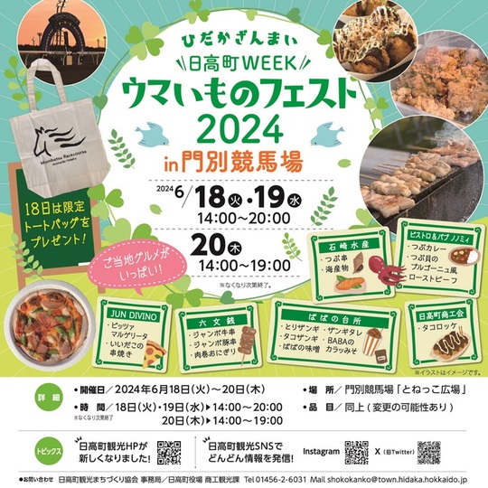 門別競馬場イベントについて(6月18日[火]~20[木]日高町WEEK!ウマいものフェスト2024 in門別競馬場)