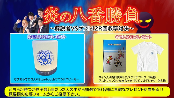 題して「炎の八番勝負~なまちゃき解説者VSゲストによる全レース回収率対決~」