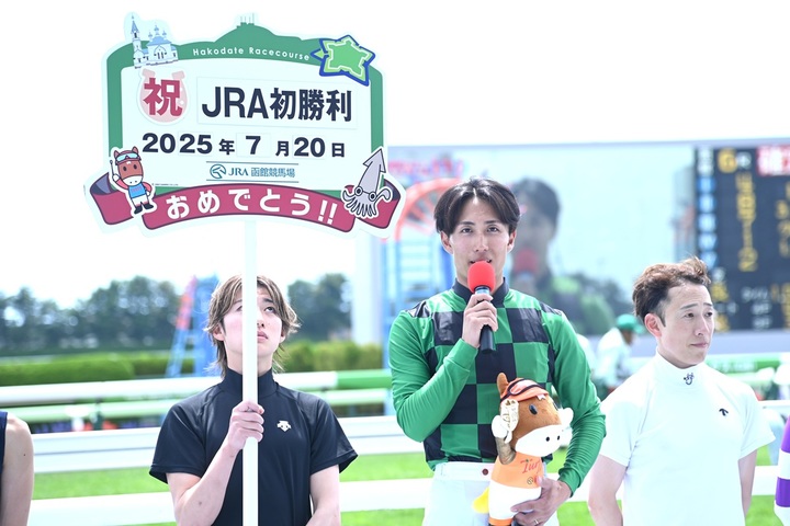 6R・ヒットザグラウンドでJRA初勝利を挙げたことについて:「勝つことが出来て嬉しい気持ちでいっぱいです。レースに向かう気持ちは変わらないですが、普段乗らない芝のコースやたくさんのお客様の前で競馬が出来ることで、いつもと違う気持ちで臨みました。地方の僕にもJRAの騎手の皆様が温かく迎え入れてくれてありがたかったです。幼少期の頃から憧れていたJRAで勝つことが出来て良かったですし、地方競馬(ホッカイドウ競馬)も、ぜひ見て頂けたらうれしいです。」