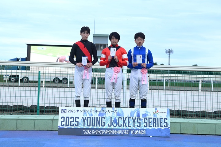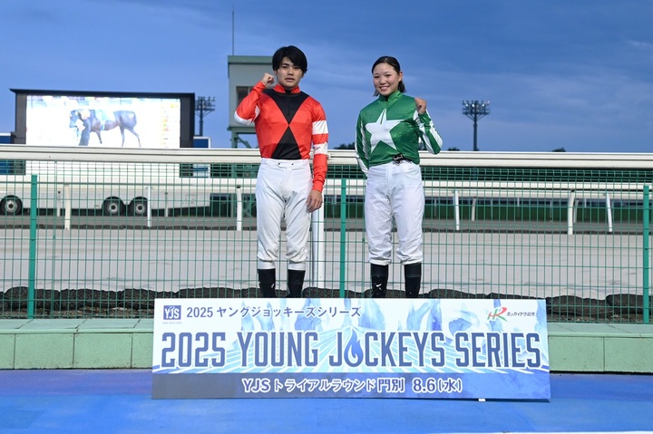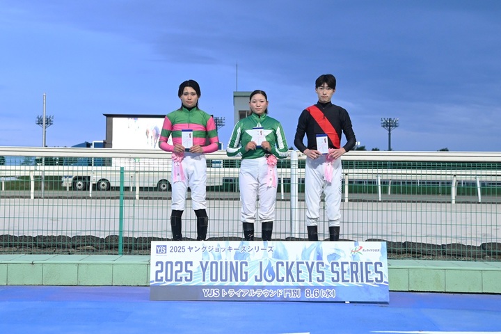本日(8月6日〔水〕)、門別競馬場において『2025ヤングジョッキーズシリーズ トライアルラウンド門別』を実施いたしました。第1戦はイクスクローバーに騎乗した水沼元輝騎手(JRA美浦所属)が、第2戦はスリーレジェンドに騎乗した小林美駒騎手(JRA美浦所属)がそれぞれ優勝しました。