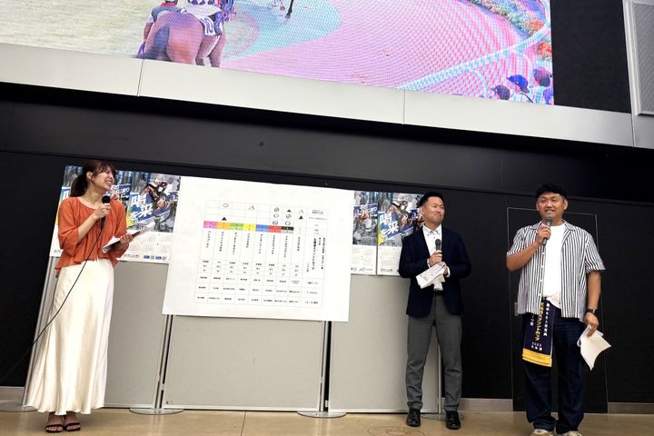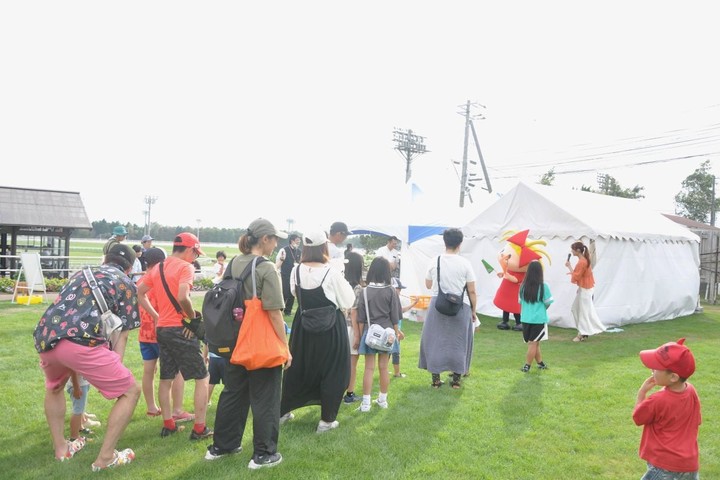 8月12日~14日 門別競馬場では、夏のケイバまつりを開催し、多くのお客様が来場しました。3日間で、日刊スポーツ桑原幹久記者とビタミンSお兄ちゃんによる北海道スプリントカップ予想トークショー、ポッカサッポロのリボンちゃん旗揚げゲーム大会、騎手課程募集広報イベント、ホクトくん・ナナセちゃんグリーティング、忍者ショーパフォーマンス、ミニチュアホース出張展示、キャッシュレス投票入会促進キャンペーン、こども縁日、缶バッジ製作体験、白砂ビン詰め体験、門別競馬場フォトラリー、スターター疑似体験、ウニモグ体験乗車、地元日高町の飲食店、大阪グルメブース、キッチンカー出店などさまざまなイベントを開催しました。
