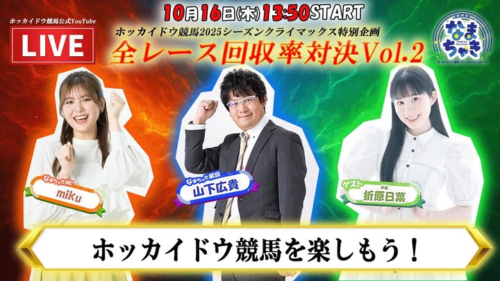 YouTube【公式】 ホッカイドウ競馬チャンネル「なまちゃきLIVE」のゲスト紹介(10月16日)